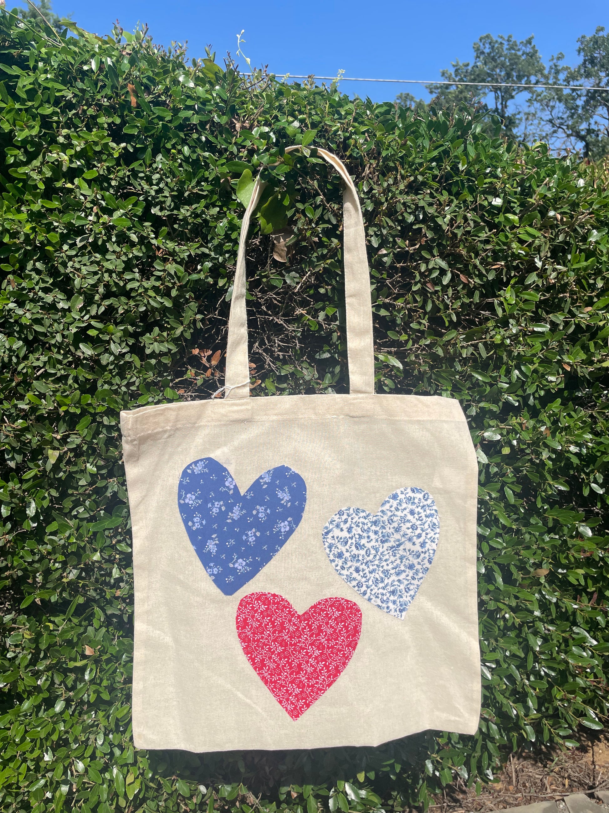 Show off your style with a touch of Americana charm! This handmade patchwork tote features bold red, white, and blue heart accents stitched together with care, making it a statement piece that’s both practical and patriotic. Perfect for summer outings, picnics, farmers’ markets, or everyday use, this tote blends cozy cottagecore vibes with durable functionality.