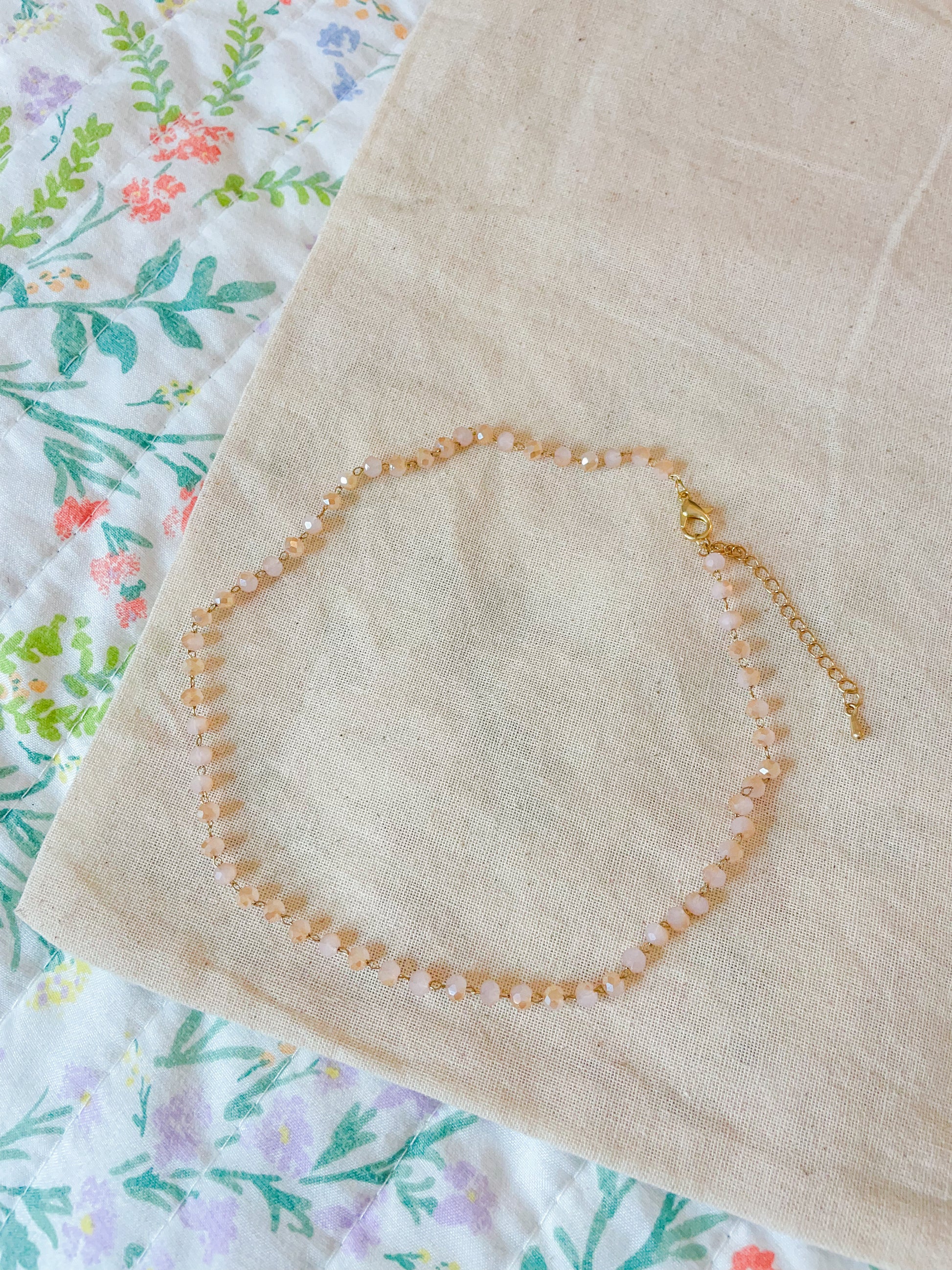 peach crystal dainty beaded chain necklace